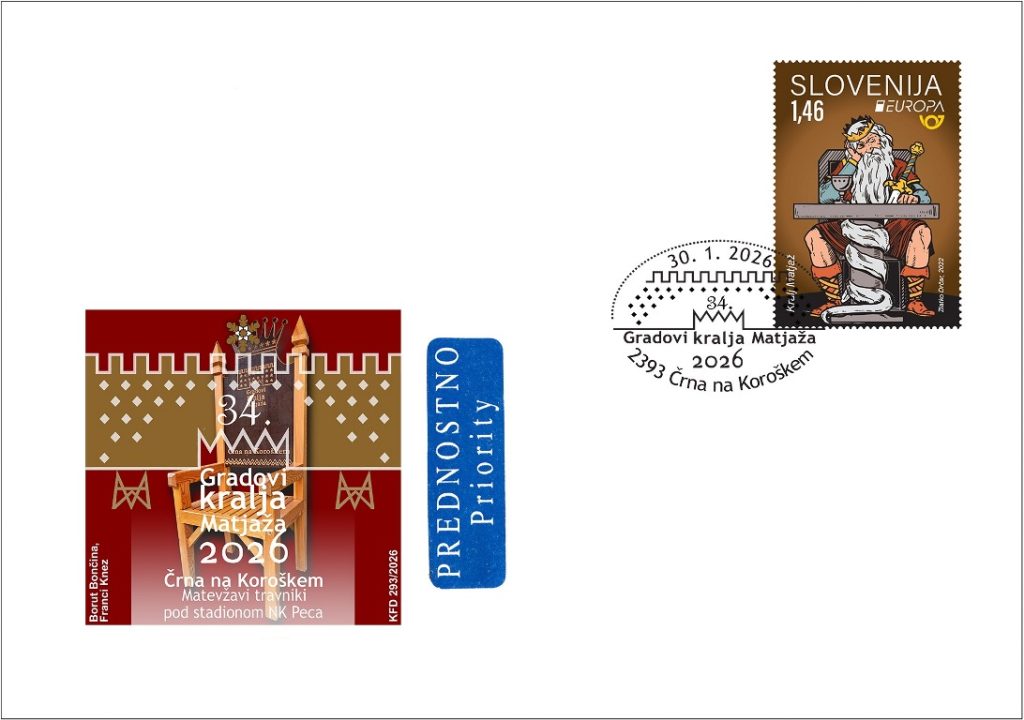 In ponovno se nadaljuje navada filatelističnega obeleževanja tega dogodka, ko bo v petek, 30. 1. 2026, na pred-dan/predvečer gradenj snežnih gradov poleg rednega poštnega žiga, na pošti 2393 Črna na Koroškem že trinajstič zapored v uporabi tudi priložnostni poštni žig. Moralo bi biti že štirinajstič, a je bila lanska filatelistična izdaja, vključno s poštnim žigom uradno odpovedana. Občina Črna na Koroškem bo poleg poštnega žiga izdala tudi ilustrirano dopisnico (KFD (294/2026), sočasno pa bo Koroško filatelistično društvo (KFD) samostojno in v butični nakladi izdalo še priložnostno pisemsko ovojnico (KFD 293/2026) ter osebno poštno znamko (nominala A). Priložnostni poštni sklop, ki ga zaokrožuje priložnostna filatelistična razstava (Jože Keber, KFD), postavljena v prostorih Pošte 2390 Črna na Koroškem, je že štirinajstič zapored oblikoval arh. Borut Bončina, so-avtor priložnostnega poštnega žiga je Peter Močnik. Izhodiščni motiv sklopa je lesen »Matjažev« prestol, ki ga je pred par leti izdelal Franci Knez in krasi avlo Občine Črna na Koroškem.