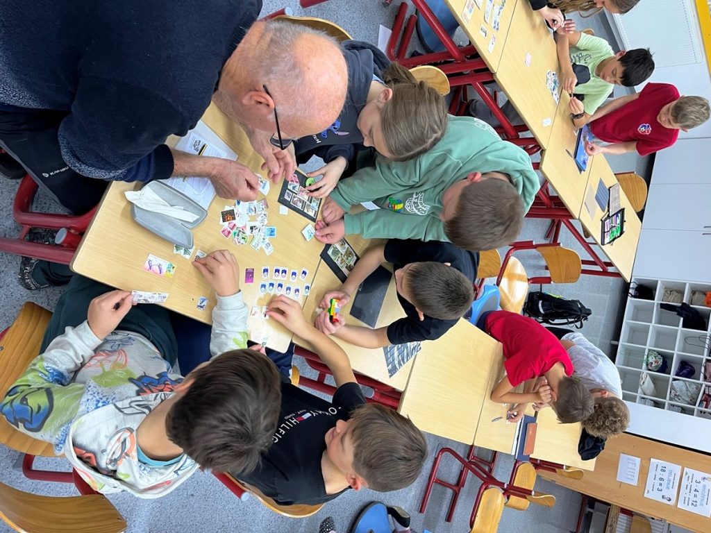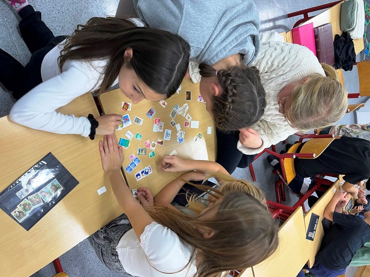Na današnjem krožku smo se pri lotili tematskega razvrščanja znamk v skupinah in tako spodbudili naše krožkarje k premišljevanju katere teme se bodo lotili pri zbiranju. Iz besede zbirke ŽIVALI smo lahko slišali, da se omejimo samo na opice, konje ali pa iz teme ZIMSKI ŠPORTI bi zbirali samo smučanje ali skoke